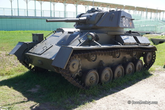T-80 được thiết kế năm 1943 trên cơ sở T-70. Mỗi động cơ được tăng cường thành 80 sức ngựa, giáp bảo vệ bên hông tăng lên 25mm, cơ số đạn tăng lên 94 viên, và quan trọng nhất là xe tăng được trang bị tháp pháo với kíp xe tăng lên 3 người. Điều này góp phần giảm nhẹ đi công việc cho chỉ huy, và cho phép trưởng xe tập trung thực hiện công việc của mình trên chiến trường – quan sát và chỉ định mục tiêu.